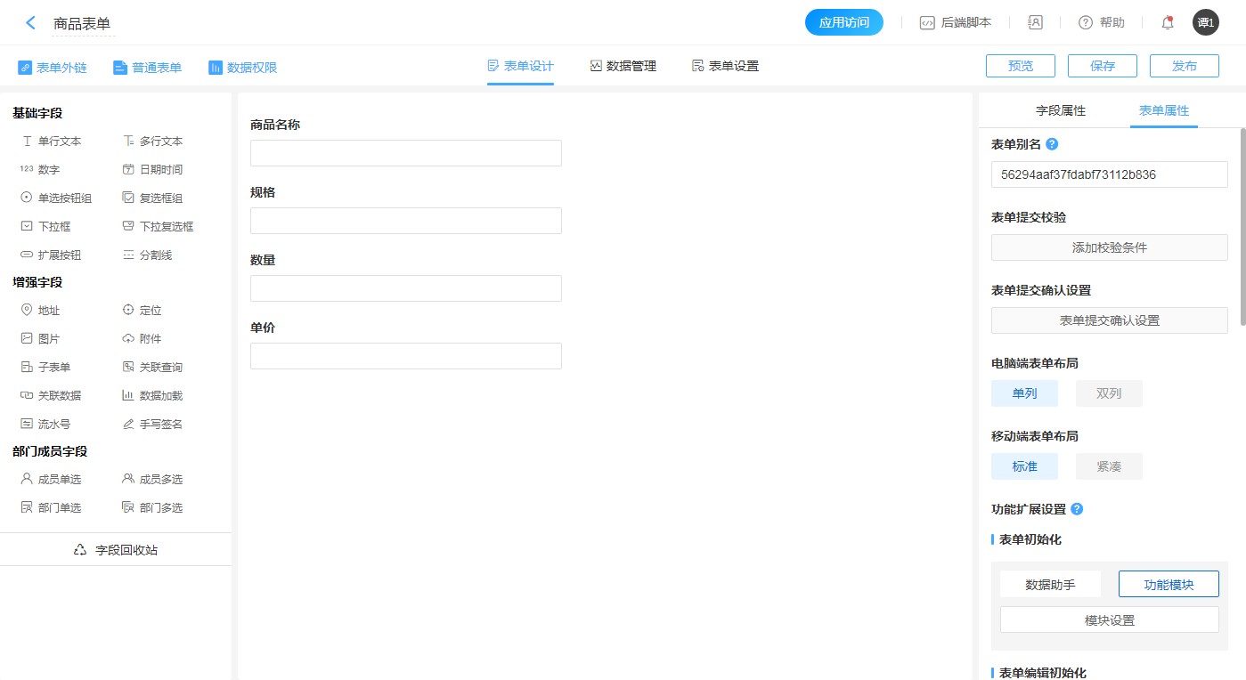 - 1.创建表单【商品表单】,用于被关联。