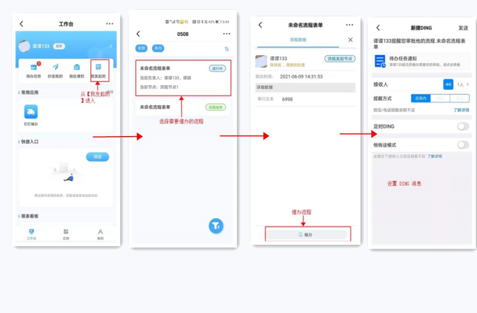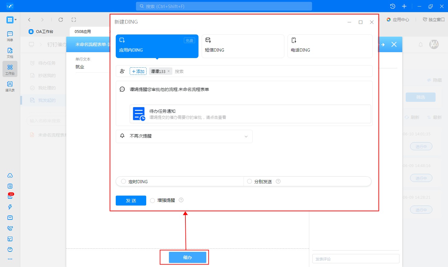 从手机钉钉工作台发起催办