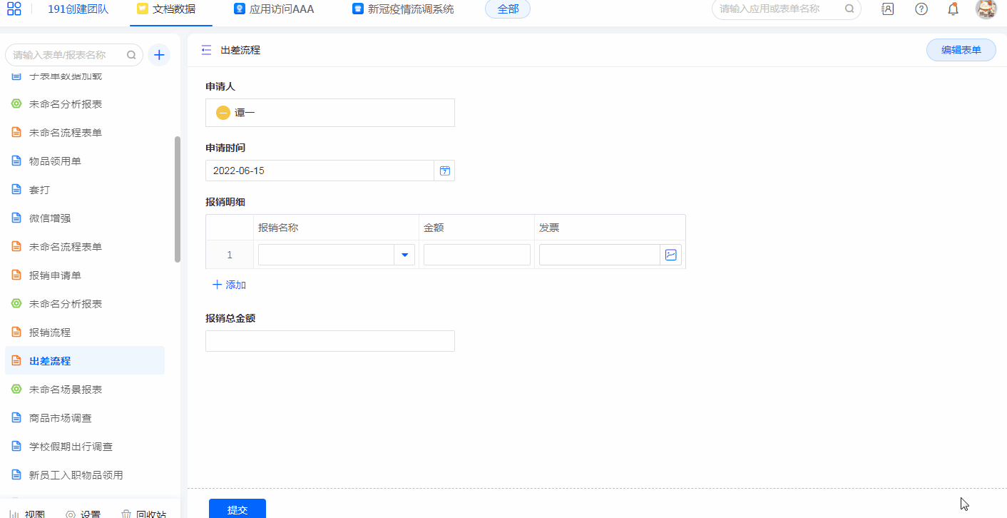 首先,在父流程里提交一条数据,提交以后并进行流程的审批,审批通过后,即进入子流程中完成子流程的相关审批操作。