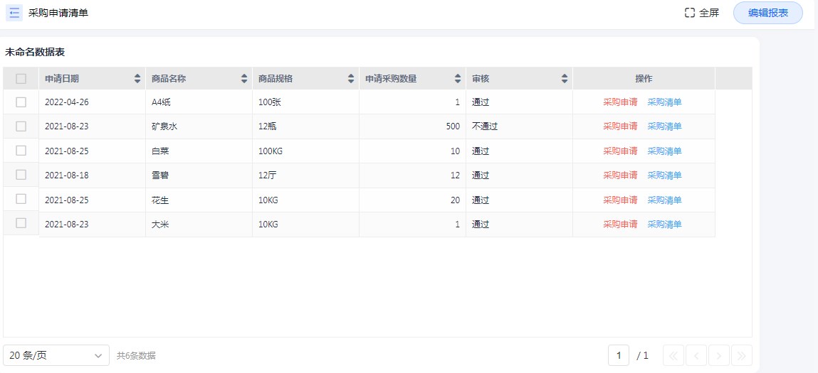 平台的报表体系,支持报表菜单,在报表的表头上方,支持添加自定义按钮,可对接功能插件、数据助手或者弹出表单、报表。