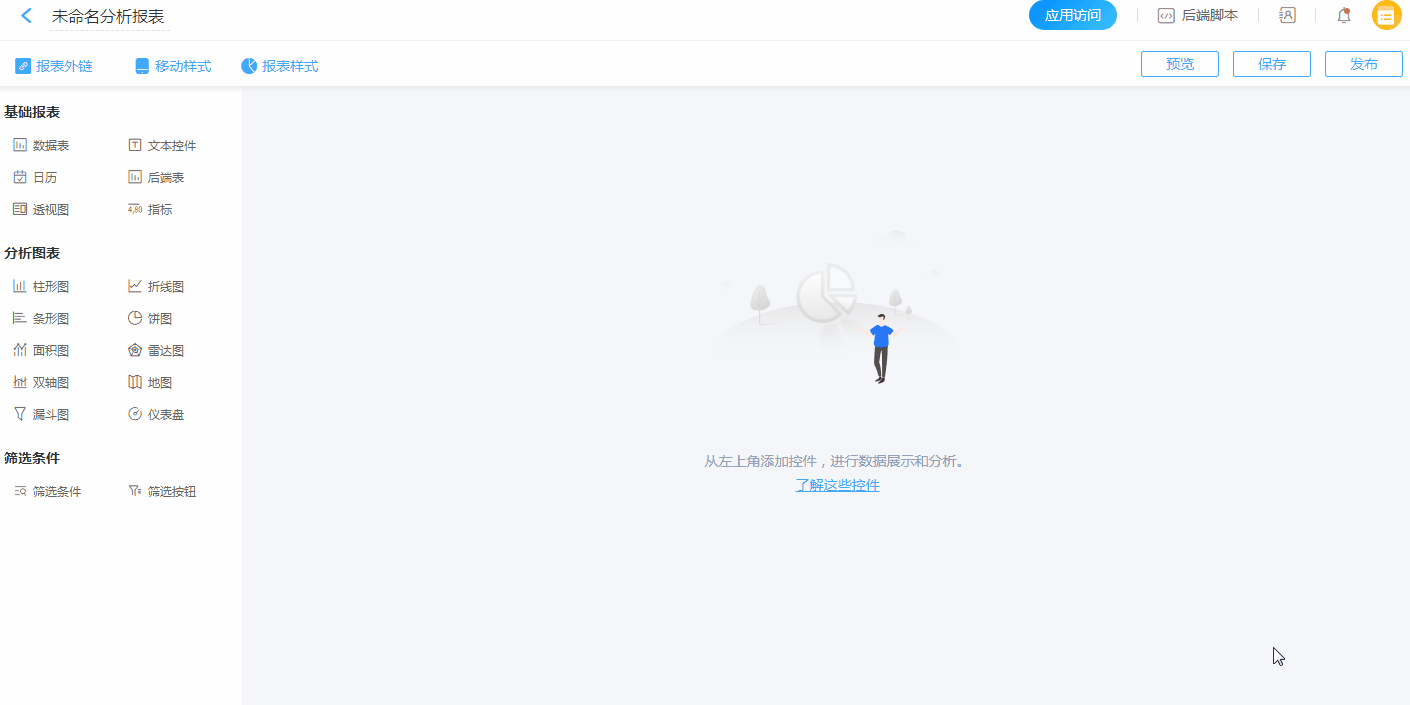 所有报表控件必须选择数据源,否则不生效