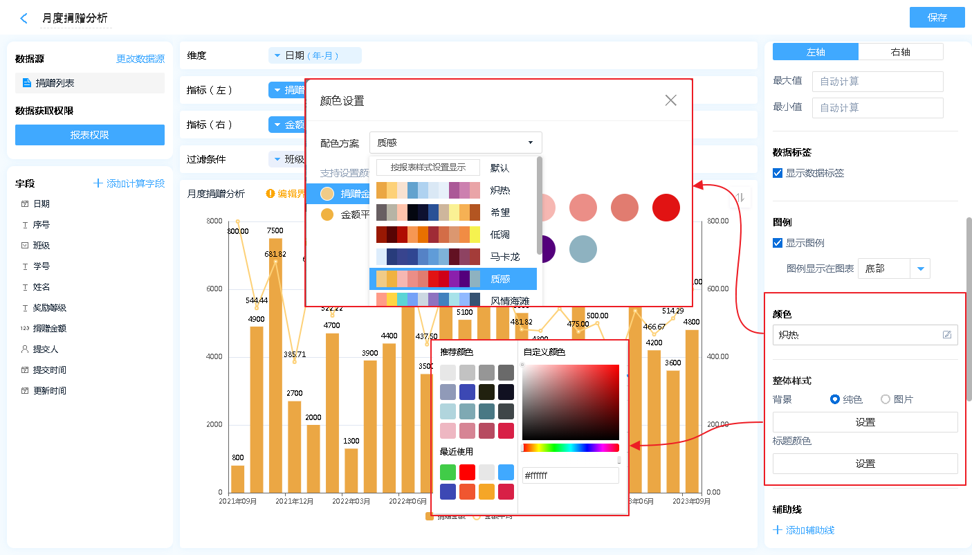 双轴图的右侧菜单主要用来对双轴图进行各种设置。