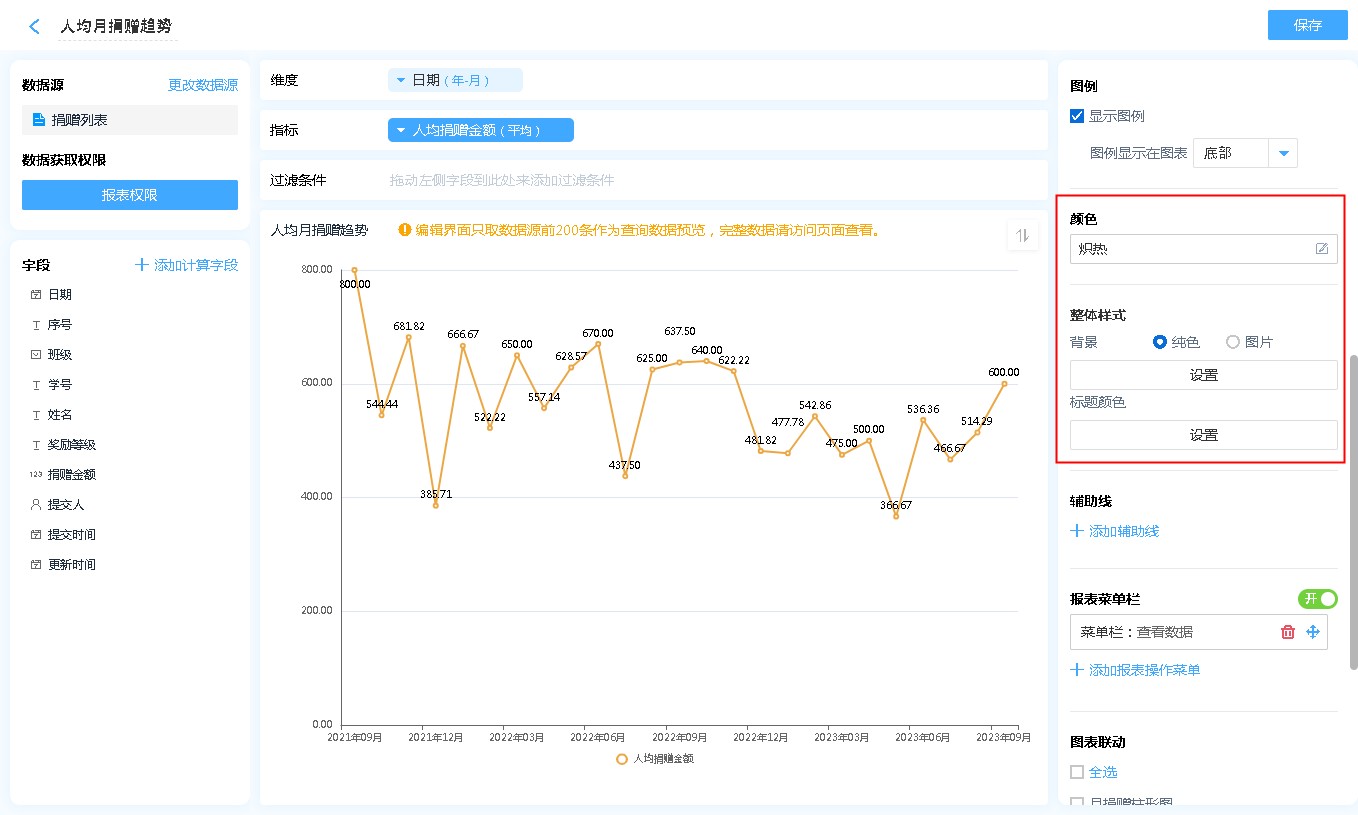 折线图的右侧菜单主要用来对折线图进行各种设置。