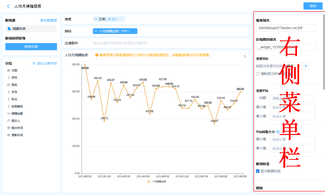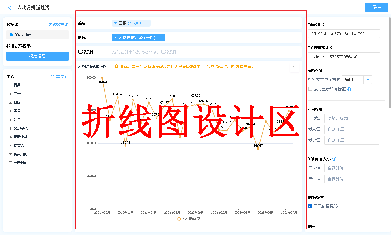 数据源就是指当前折线图表的数据来源,可以是表单、数据视图。
