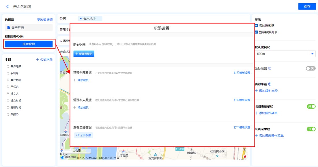 地图场景报表的自定义权限仅可设定自定义菜单权限
