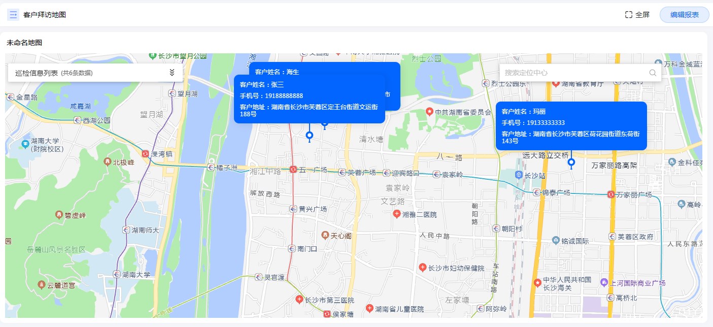 地图报表可以查看客户的位置信息,并可以进行快速导航。