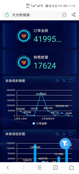 隐藏控件后,移动端【未命名地控件】和【地区利润】未展示,展示效果如下图所示: