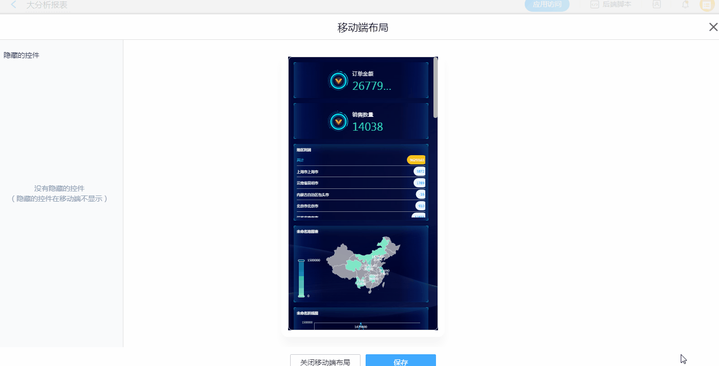 - 移动布局只影响报表在移动端的展示,不影响报表在PC端的展示。