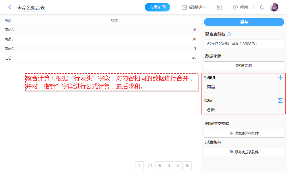 只配置一个字段,直接求和。(聚合公式支持 加减乘除( + - * / ))
