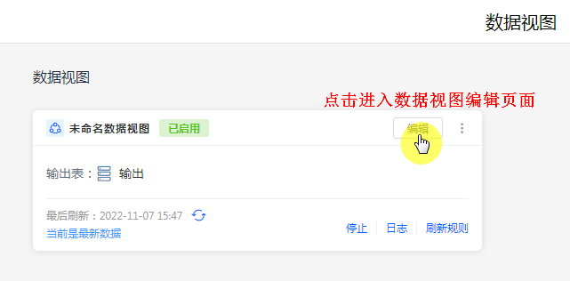 - 编辑可以对创建好的数据视图进行首次设计或二次修改。