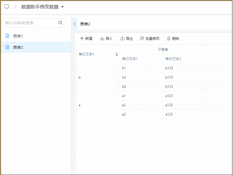 | 子表字段 | 子表单内的字段 |