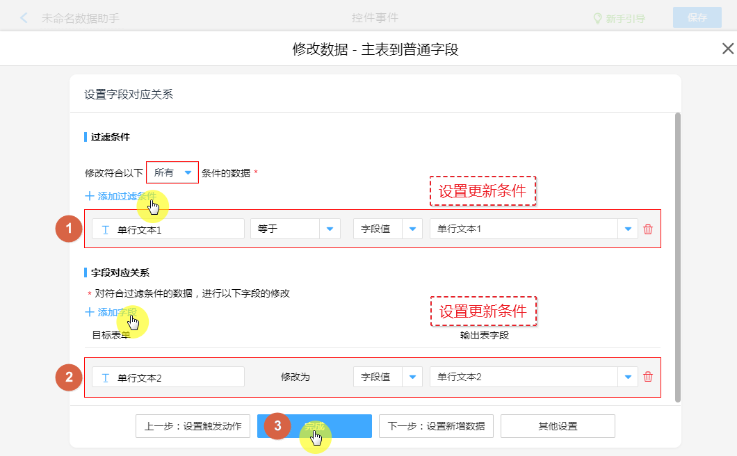 ①、设置主表更新条件。