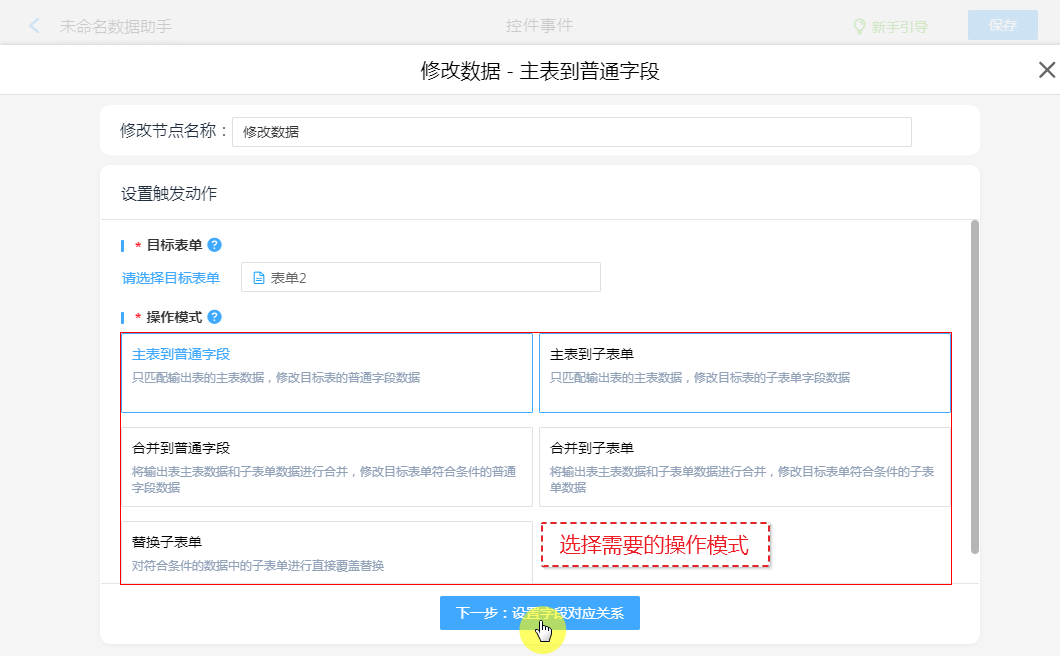 ②、设置主表更新字段。